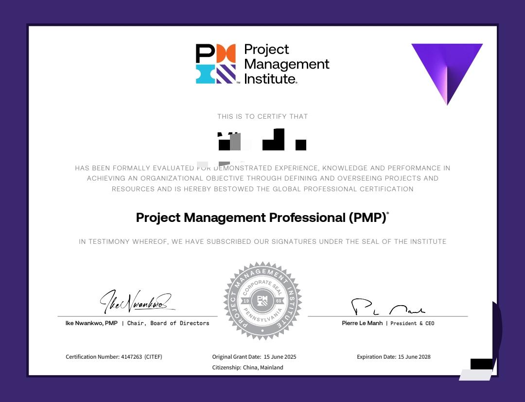 其实从2022年就报名了 一路磕磕绊绊,终于拿下了pmp证书! 总体备考差不多仨月,这段日子不仅啃下了项目管理那套体系,更让我深深体会到:选对平台(艾威培训)+ 跟对人(老张),是通关的蕞大_!真心感谢 …