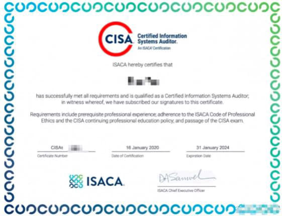 CISA证书是IT GRC (治理、风险与审计)领域的专业认证证书