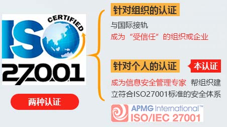 本课程为ISO27001 Foundation,是由APMG机构颁发的个人认证,作为信息安全管理方面最著名的国际标准——ISO/IEC 27001,可以指导我们现实工作。 ISO27001 Foundation是为了培养并提高信息安全管理(ISO 27001)建设者所开设的课程,更注重信息安全管理的实施、维护与优化方面。