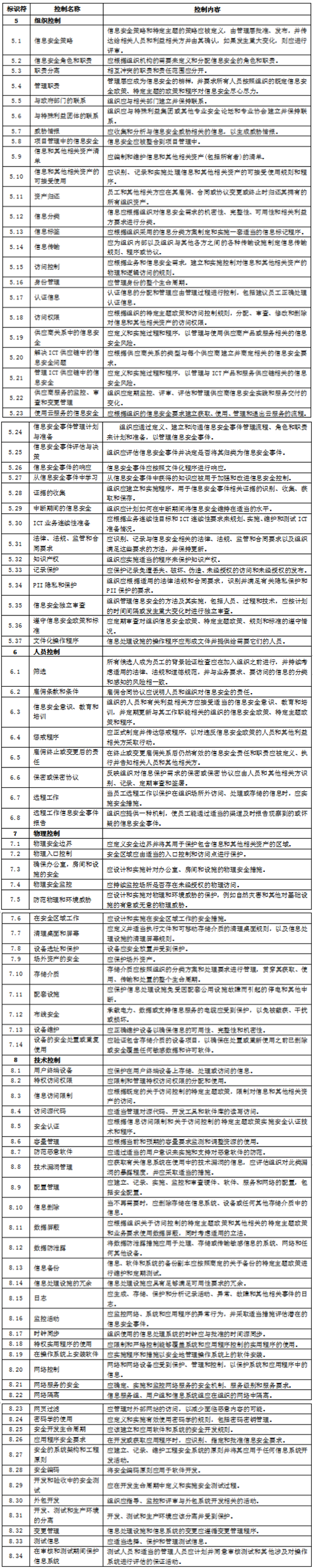 ISO/IEC27001:2022 包括“组织、人员、物理和技术信息安全控制”4个方向的9​3项控制