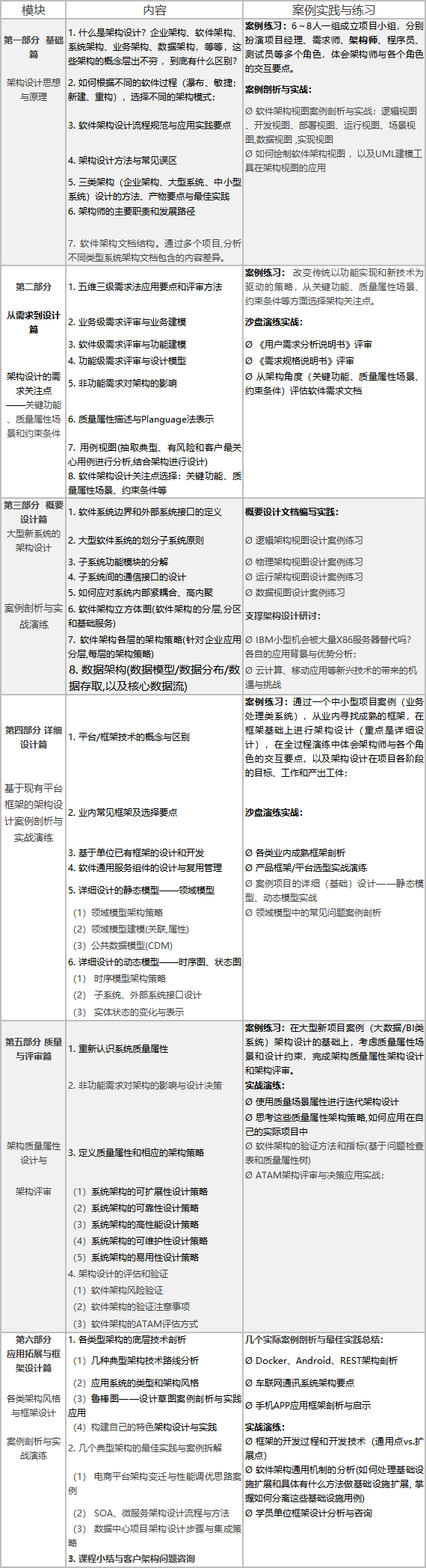 2. 通过全过程案例讲解,使学员全面经历架构设计各阶段的常见痛点和难点,在边做边学中增强其解决实际问题的能力;