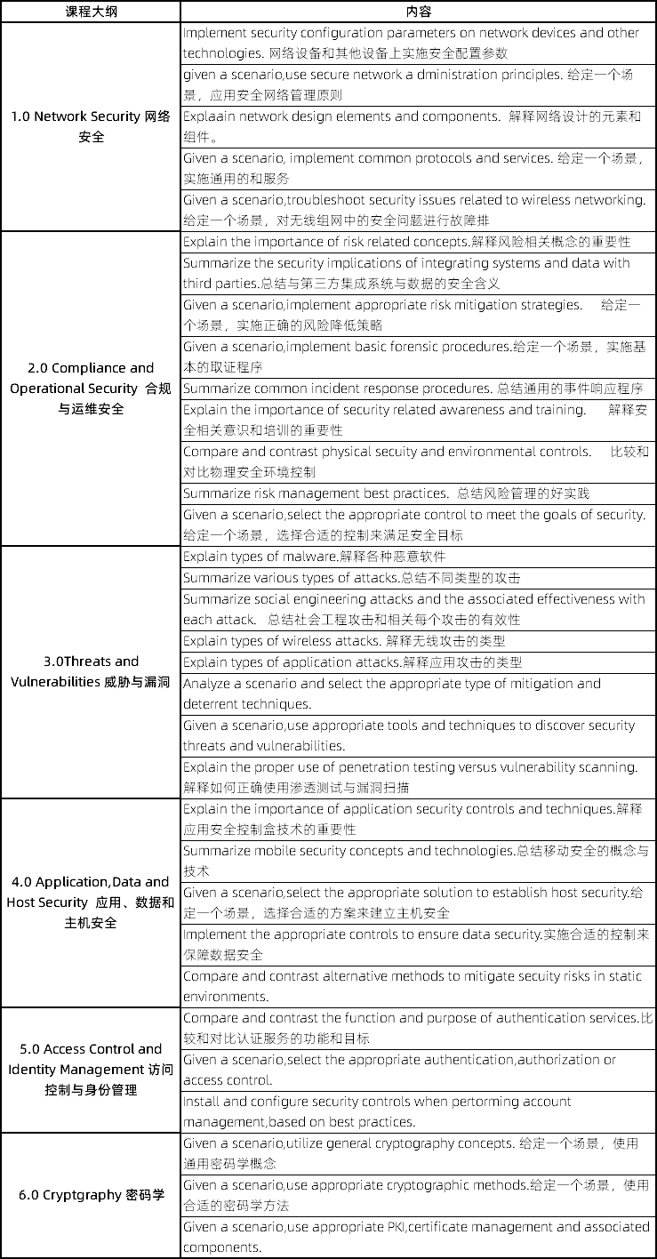 CompTIA Security+ 认证适用于符合以下条件的 IT 安全专业人士:至少拥有 2 年的 IT 管理工作经验且着重于安全方面日常工作中信息安全技术经验,在安全问题和实施方面拥有丰富的知识 。