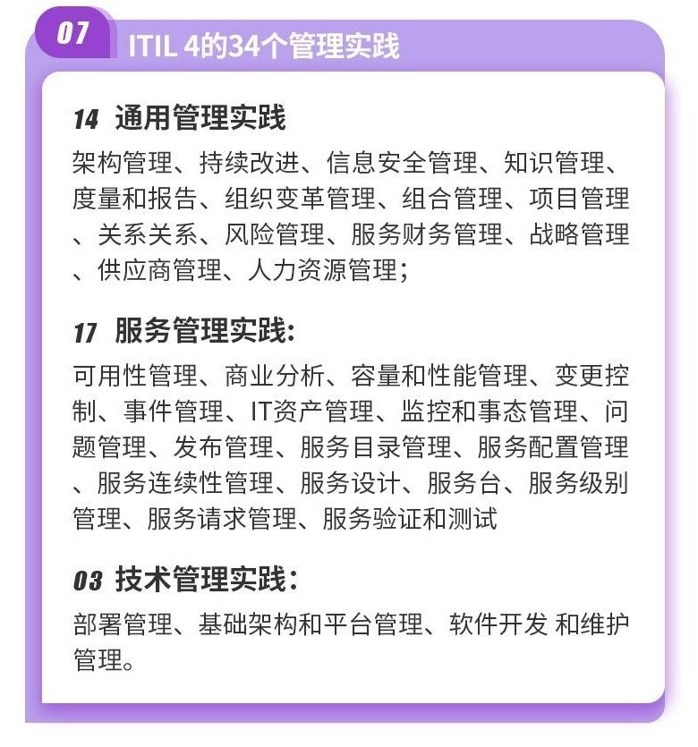 ITIL 4关注的18个基础实践