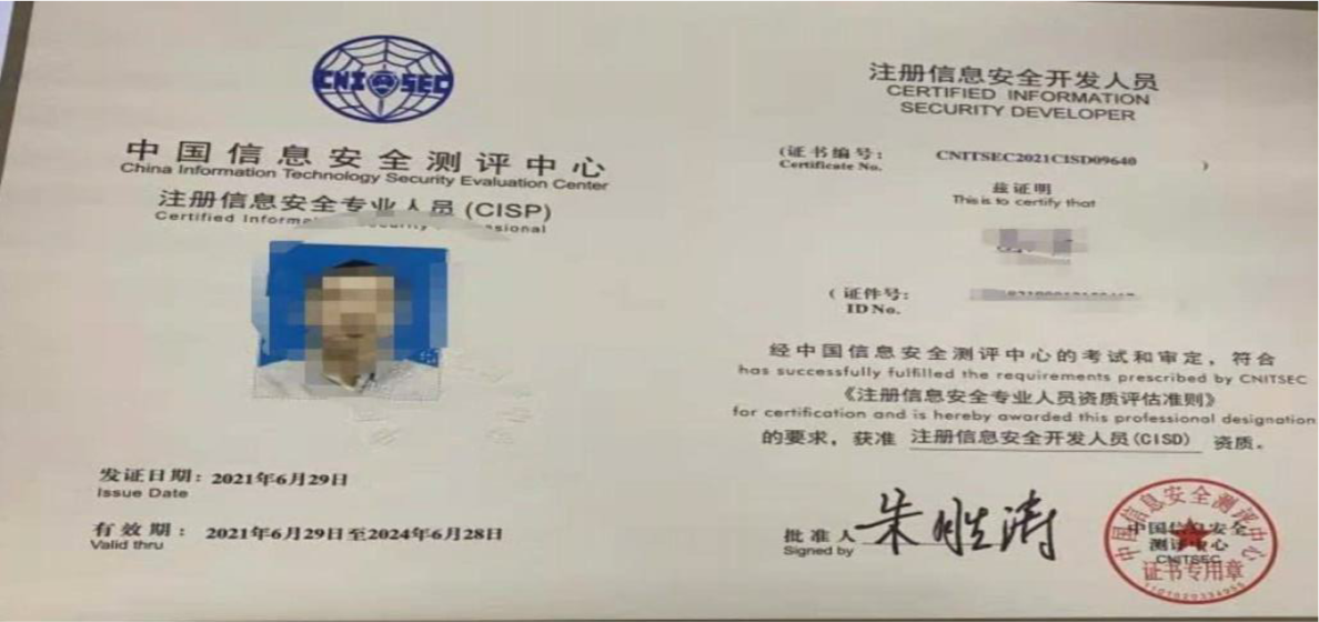 3、通过中国信息安全测评中心组织的注册信息安全开发人员 (CISD) 考试